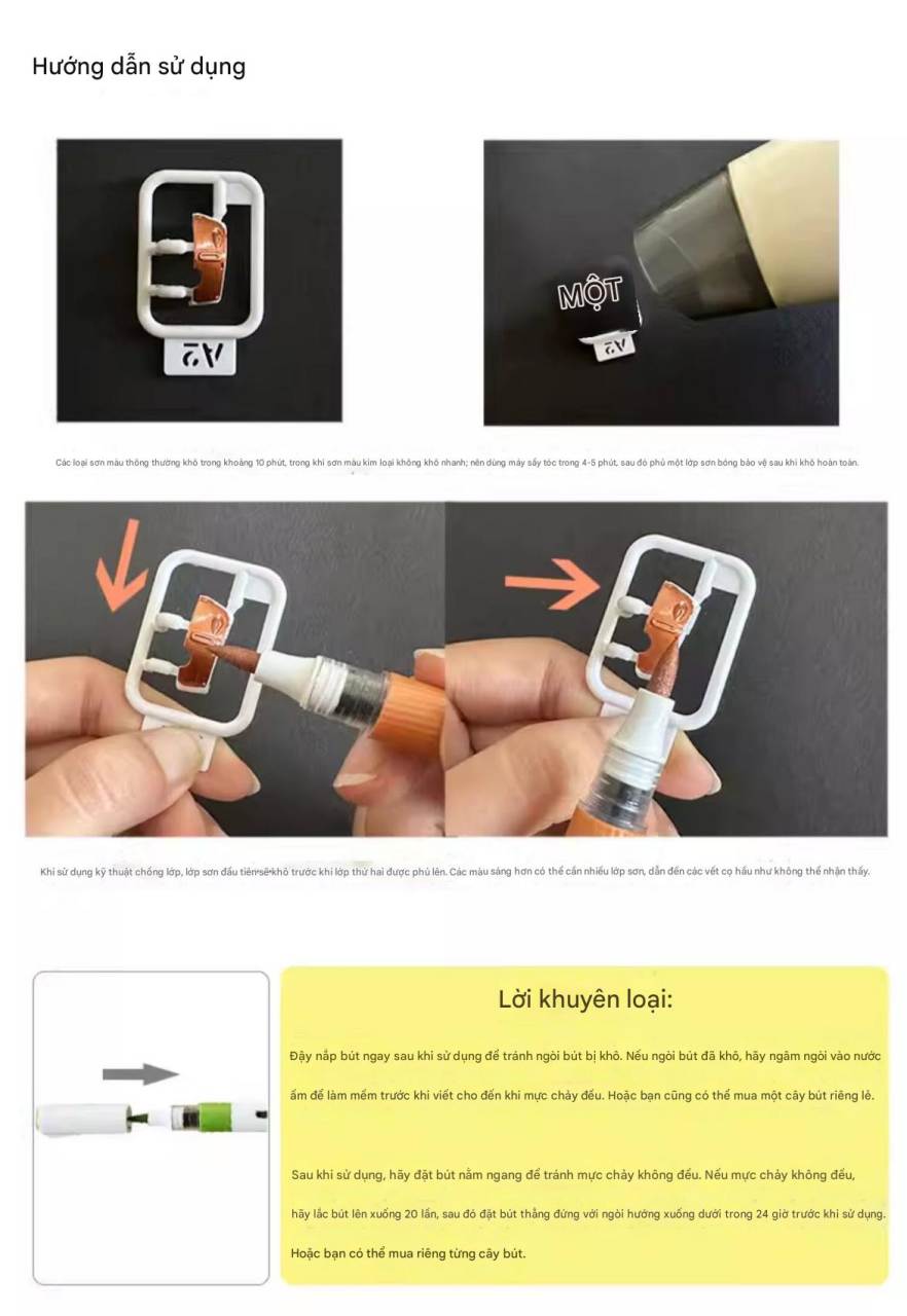 -Độ che phủ cực tốt: Màu lên đậm, chuẩn ngay từ lớp đầu tiên, dễ dàng che phủ các chi tiết nhựa tối màu hoặc vết cắt (nub mark).