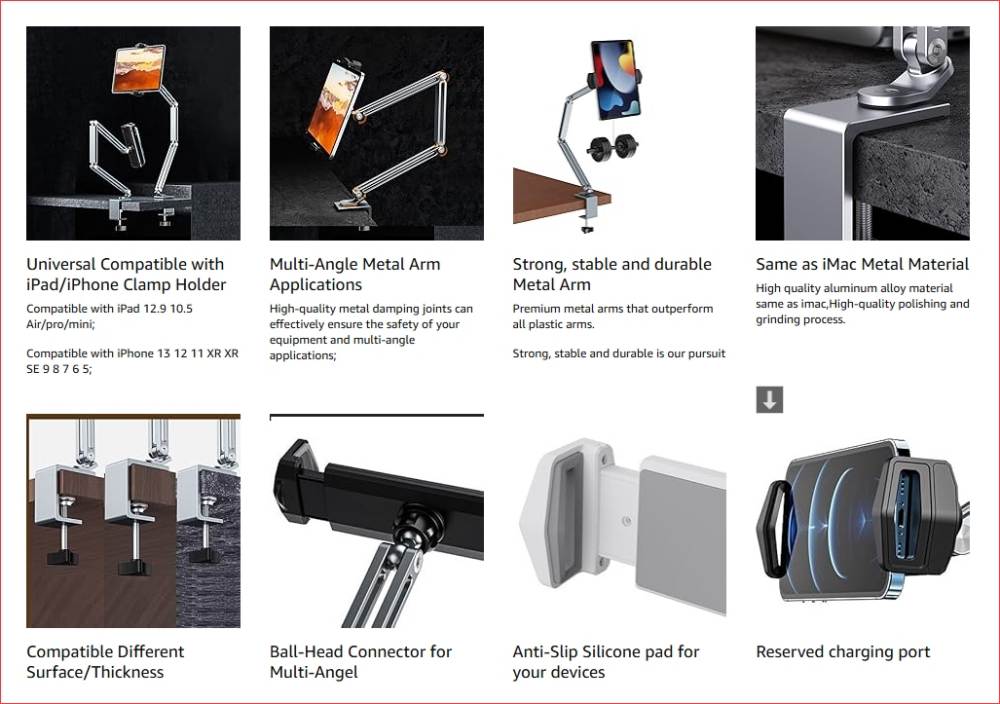 Tên sản phẩm: Giá Đỡ Arm nâng Điện Thoại Máy Tính Bảng CT9 Aluminum Alloy Bracket 360 Degree Universal stand for phone tablet stand adjustable