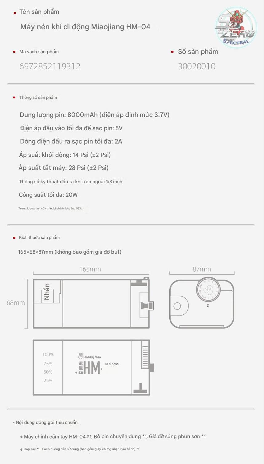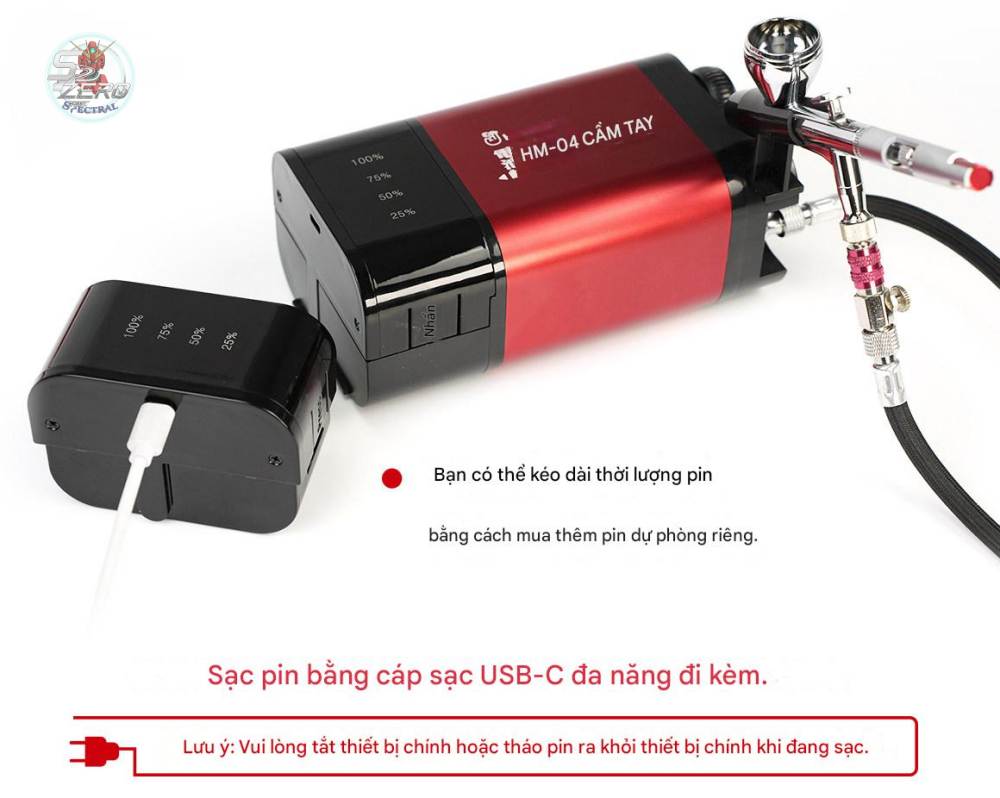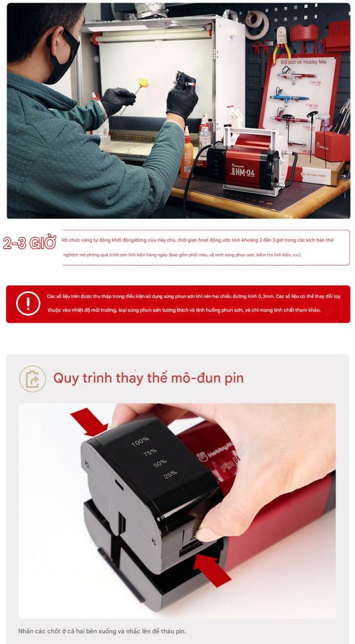 Máy nén khí mini HM04 Portable Compressor air pump airbrush Hobby mio
