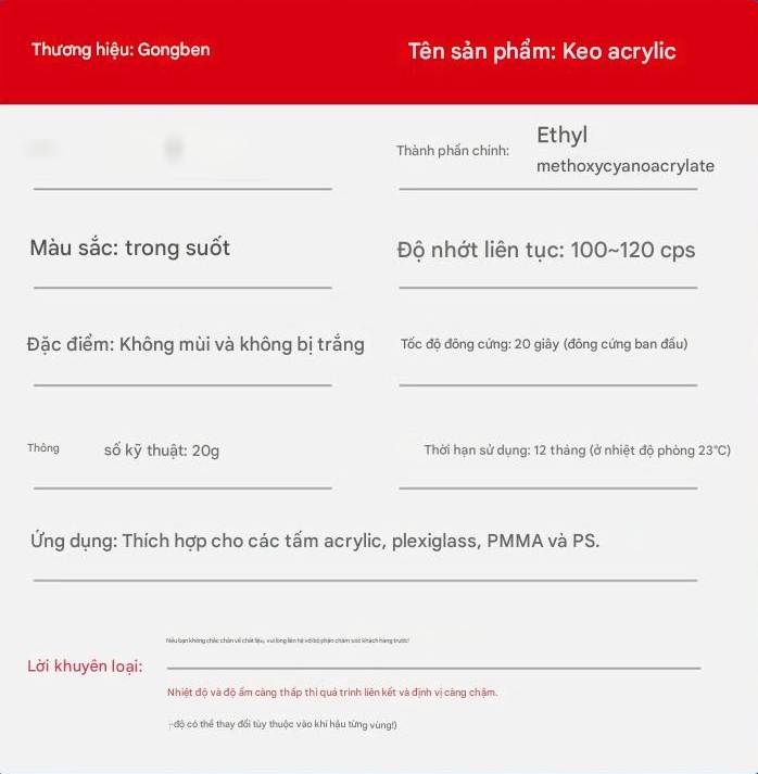 - Keo acrylic dùng để dán các tấm acrylic, PMMA, plexiglass, bể cá, keo sửa chữa, PLA, bo mạch PC,