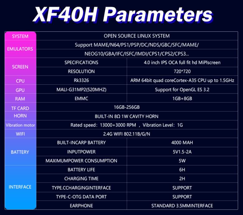 Máy chơi game XF40H Retro Handheld Console 4.0 Inch Screen