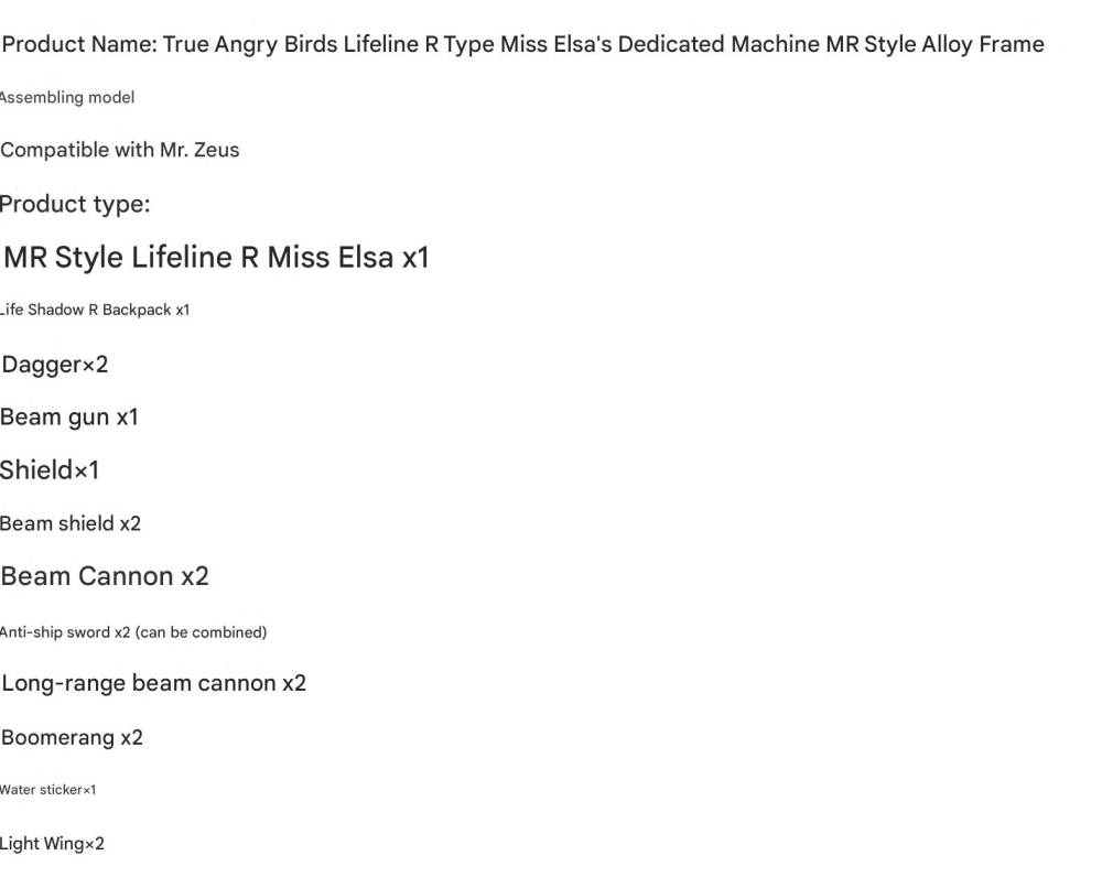 Tên sản phẩm: Destiny Impulse Gundam R-type Elsa Miss Metal Robot